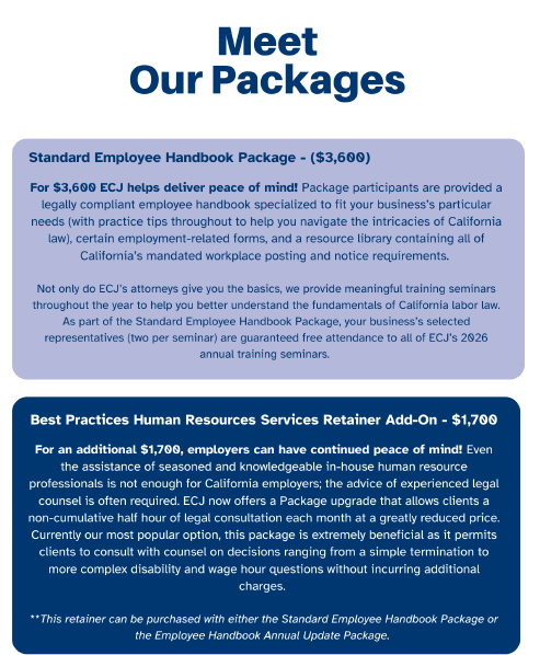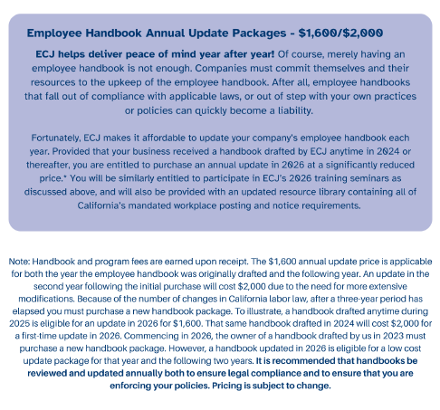 ECJ's Employee Handbook program keeps you in compliance with CA employment law.
